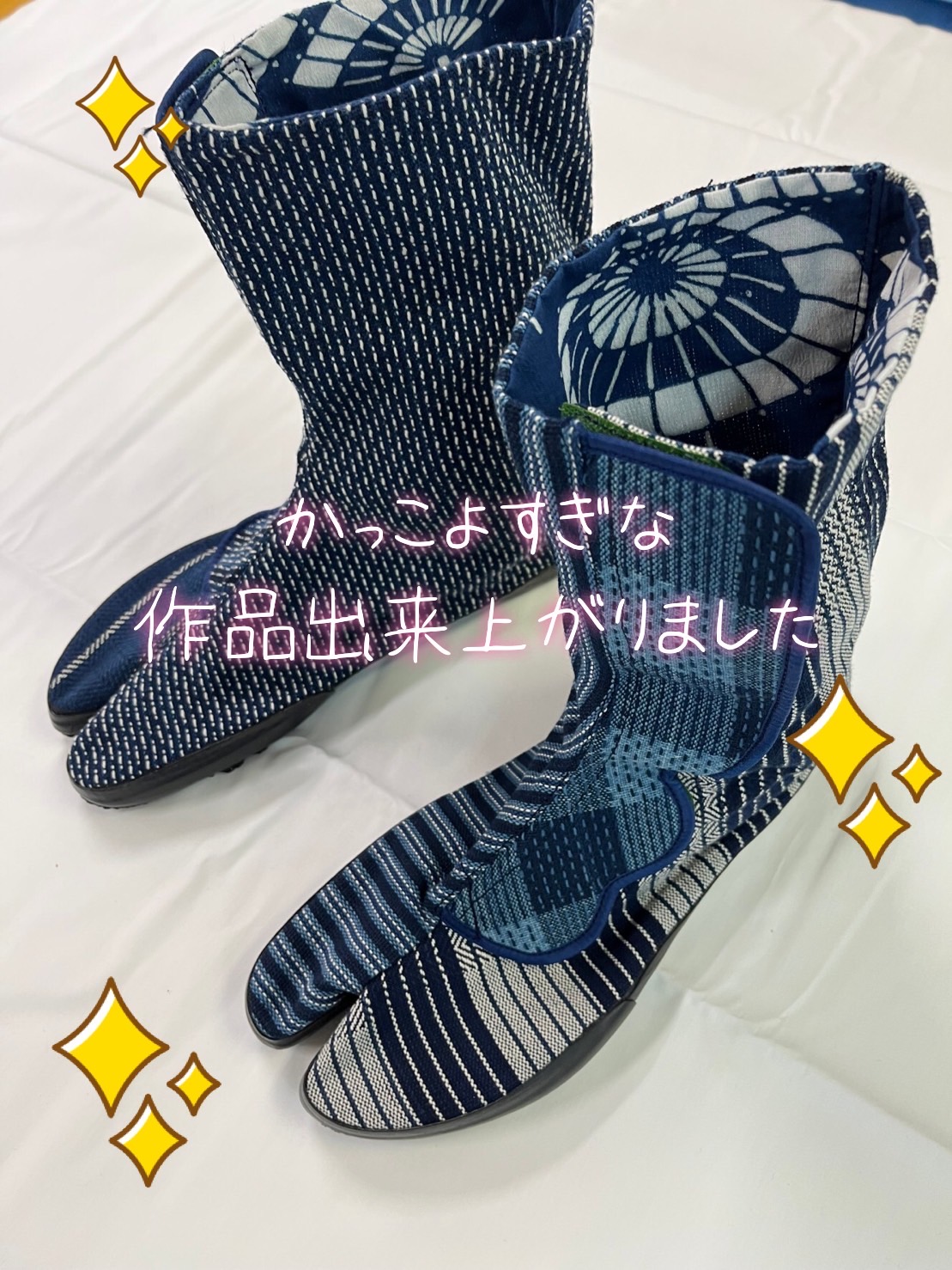 どうです?みなさん。かっこよくないですか?藍染織物を使った足袋!
