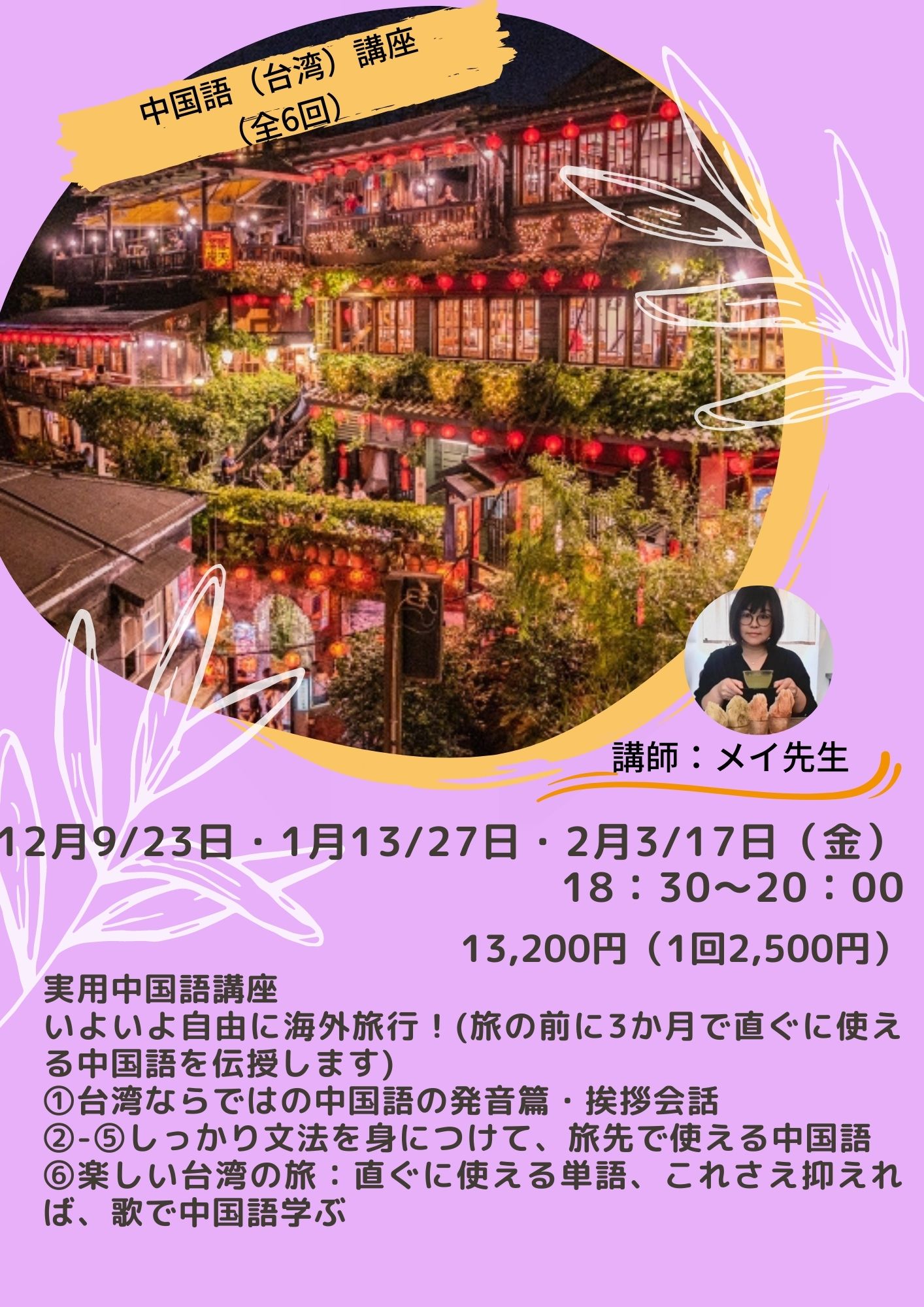 台湾出身メイ先生から学ぶ中国語(台湾)講座の開講が決定しました!